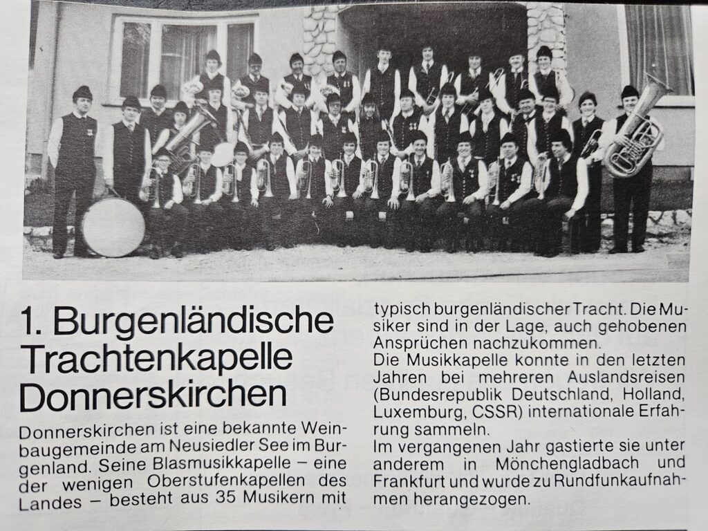 1964 offizielle Gründung des Musikvereines „1. Burgenländische Trachtenkapelle Donnerskirchen“.