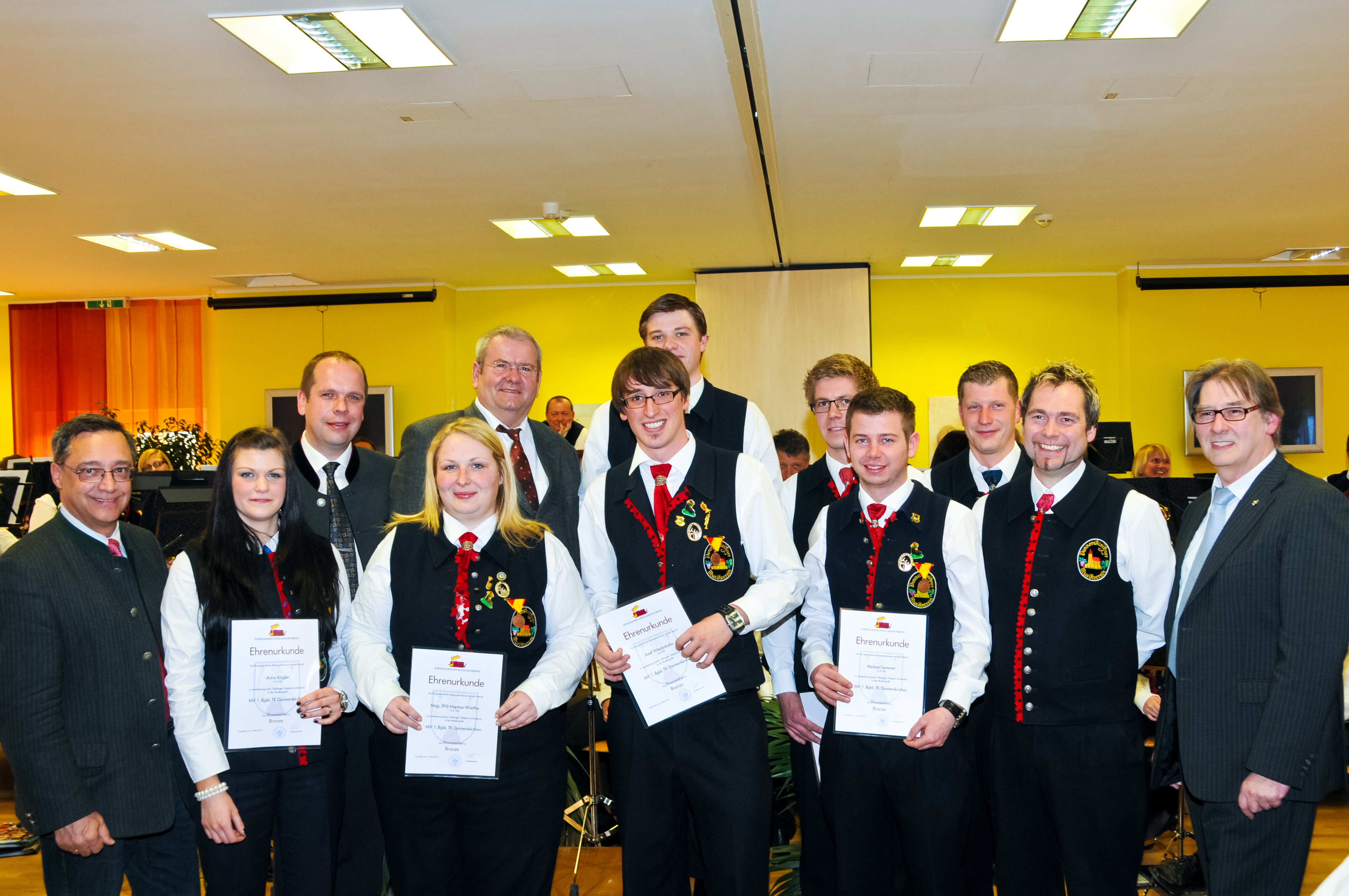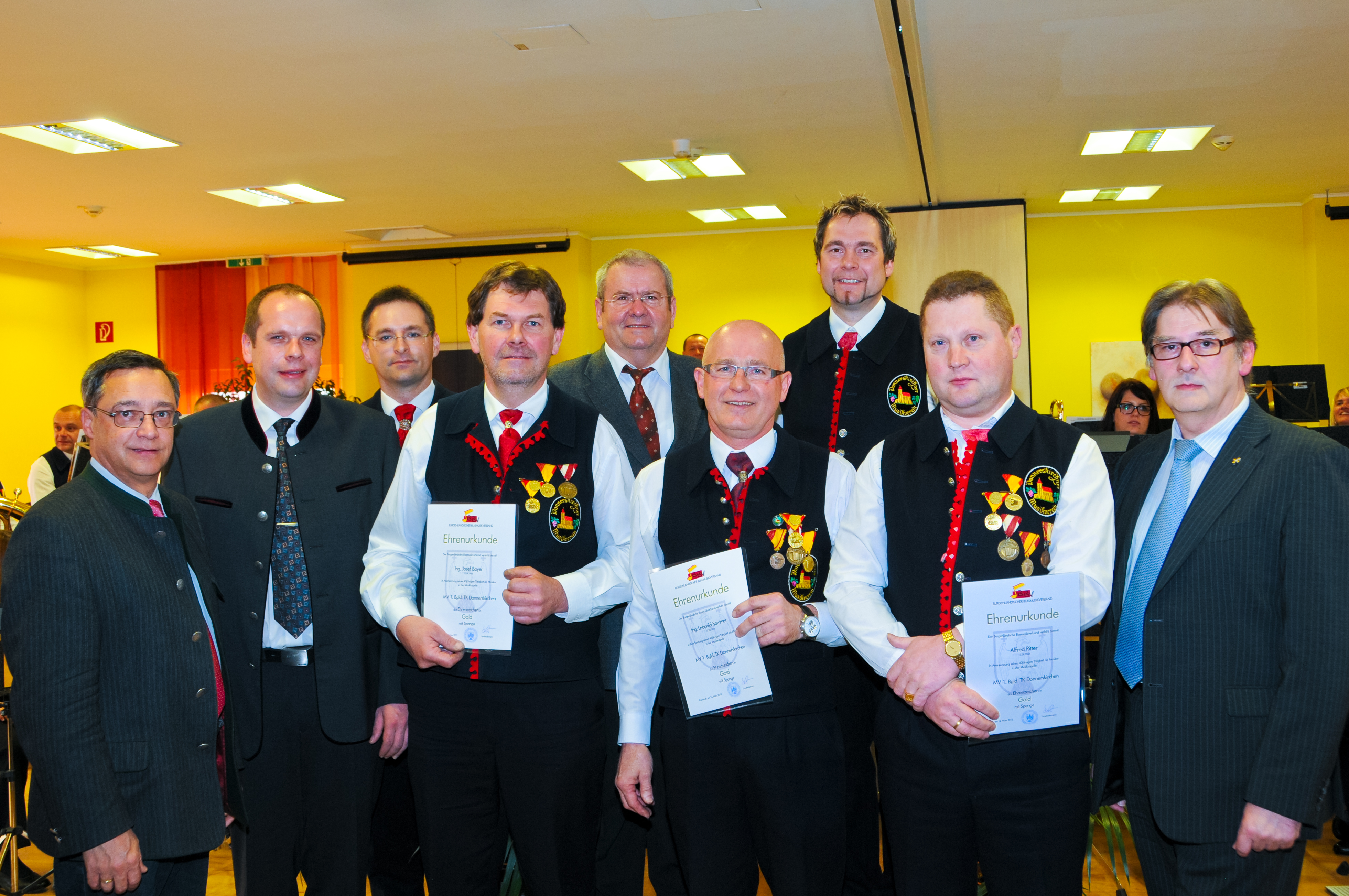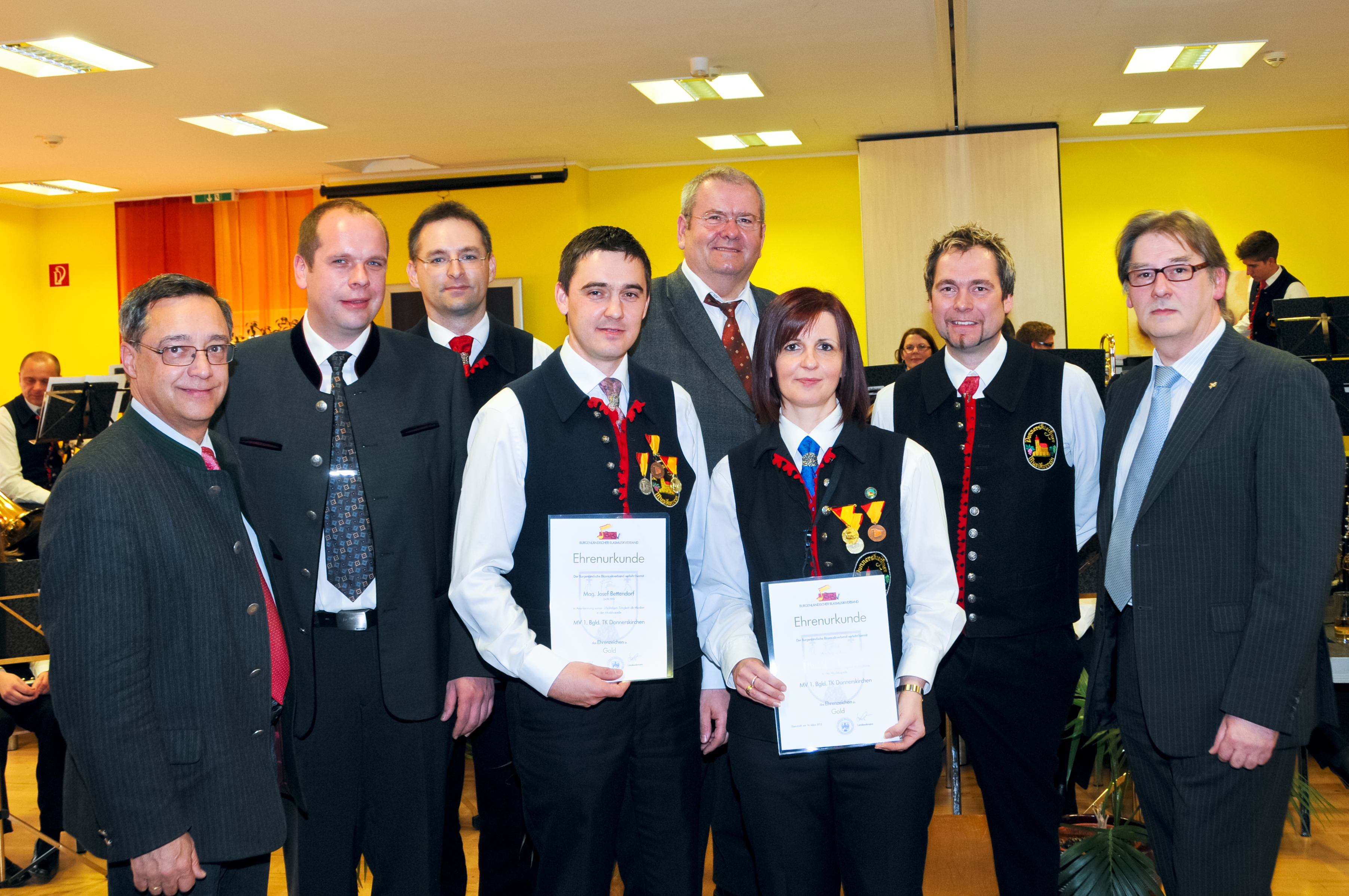 Im weiteren Verlauf des Konzerts wurde eine beachtliche Anzahl unserer Musiker von ÖBV-Präsident Prof. Mag. Alois Loidl und Bezirksobmann Gerhard Lang im Beisein von Bgm. Josef Frippus und Vzbgm. Johannes Mezgolits für ihre langjährigen Verdienste im Musikverein geehrt. Das Ehrenzeichen in Bronze (10jährige Tätigkeit) erhielten: Josef Bayer jun., Anna Kögler, Franz Kögler, Michael Sommer, Christian Striok, Mag. Martina Wartha und Josef Wiedenhofer jun. Das Ehrenzeichen in Gold (25jährige Tätigkeit) erhielten Anita Jahn und Mag. Josef Bettendorf. Weiters wurde an Ing. Josef Bayer, Ing. Leopold Sommer und Alfred Ritter das goldene Ehrenzeichen mit Spange überreicht. Das große Ehrenzeichen in Silber für Funktionäre wurde an Ing. Johannes Gstöhl für seine über 11jährige Tätigkeit als Obmann verliehen und Josef Wiedenhofer wurde für seine langjährige Tätigkeit als Kassier geehrt.